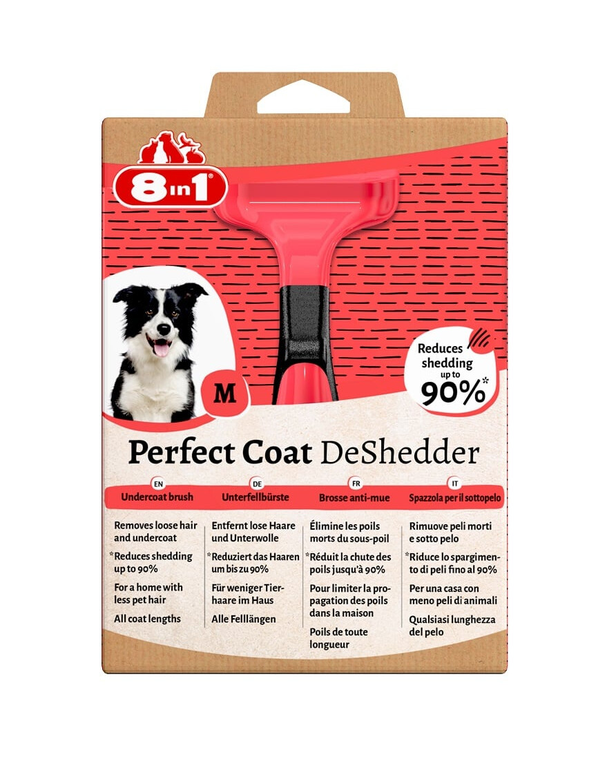 8v1 Perfect CoatDeShedder Dog -DeShedder hrebeň účinne odstraňuje odumretú srsť a podsadu psa. Vhodné pre všetky dĺžky srsti.