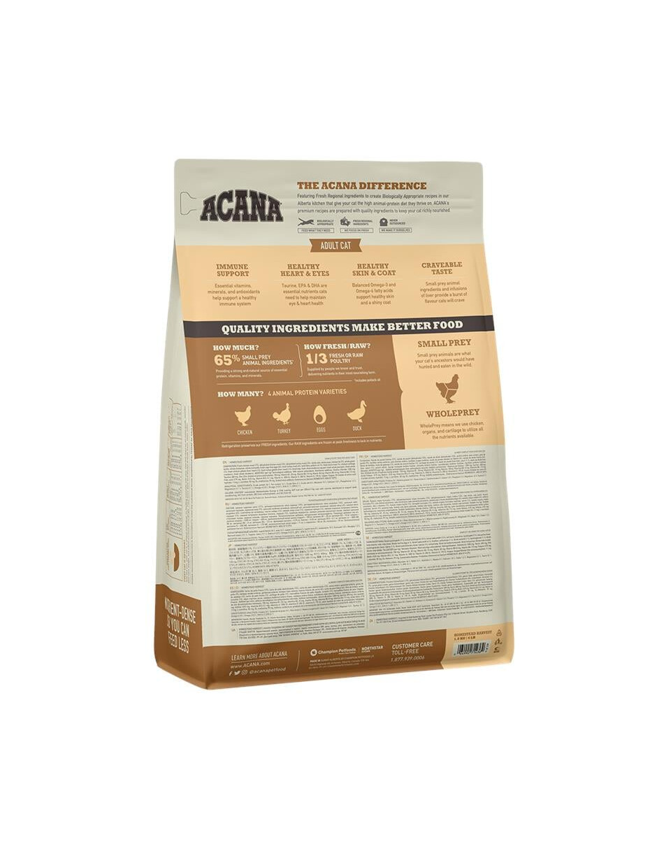 Acana Homestead Harvest je bohatá na kuracie, morčacie a kačacie mäso v pomere WholePrey. Okrem hydinového mäsa obsahuje aj orgány a chrupavky, ktoré prirodzene vyživujú vašu mačku.