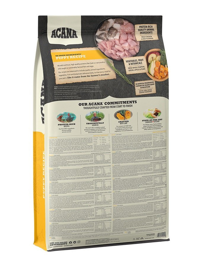 Zloženie: Čerstvé kuracie mäso (16%), dehydrované kuracie mäso (13%), dehydrované morčacie mäso (13%), červená šošovica, celý zelený hrášok, čerstvé kuracie orgány (pečeň, srdce, obličky, 6%), kurací tuk (6%) ), čerstvé celé vajcia (4%), čerstvé mäso z platýsov (4%), dehydrované sleďové mäso (3%), sleďový olej (3%), lucerna (2%), zelená šošovica, bôb (2%), celé žltý hrášok, hrachová vláknina, čerstvá kuracie chrupavka (2%), hnedá sušená chalúhka, čerstvá celá tekvica, čerstvá celá maslová tekvica, čerstvý celý paštrnák, čerstvý kel, čerstvý špenát, čerstvá plešatá kapusta, čerstvé listy repíka, celá celá mrkva, čerstvé červené lahodné jablká, čerstvé hrušky bartlett, mrazom sušená kuracia pečeň, mrazom sušená morčacie pečeň, čerstvé celé brusnice, čerstvé celé čučoriedky, koreň čakanky, kurkuma, bodliak mliečny, koreň lopúcha, kvet levandule, koreň marshmallow, šípky.