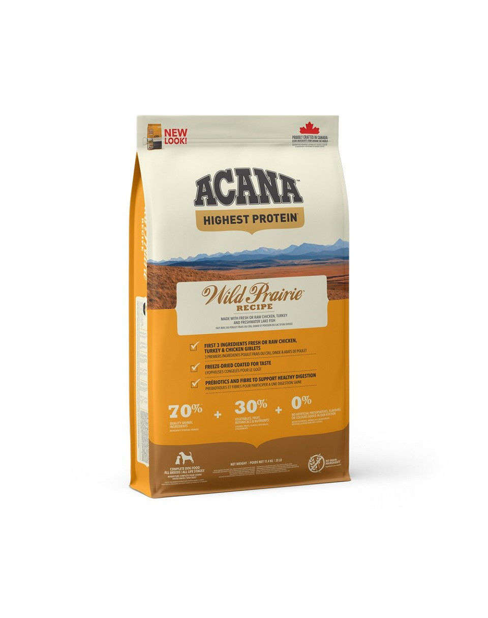 Zloženie: Čerstvé kuracie mäso (8%), čerstvé morčacie mäso (8%), čerstvé kuracie vnútornosti (pečeň, srdce, obličky) (8%), sušené kuracie mäso (8%), sušené morčacie mäso (8%), sušené slede ( 8%), celý zelený hrášok, červená šošovica, cícer, čerstvé celé vajcia (4%), čerstvý ostriež (4%), čerstvý morský pstruh (4%), kurací tuk (4%), čerstvé morčacie vnútornosti (pečeň, srdce, oblička) (3%), zelená šošovica, fazuľa škvrnitá, celý žltý hrášok, lucerna sušená na slnku, lososový olej (2%), šošovicová vlákna, sušené kuracie chrupavky (1%), hnedé riasy, čerstvá tekvica, čerstvý orech tekvica, čerstvý paštrnák, čerstvá kapusta, čerstvý špenát, čerstvá hnedá horčica, čerstvé kapustné listy, čerstvá mrkva, čerstvé jablká „Red Delicious“, čerstvé hrušky Bartlett, lyofilizovaná pečeň (kuracie a morčacie mäso) (0,1%), soľ, čerstvé brusnica, čerstvá čučoriedka, koreň čakanky, kurkuma, bodliak, veľký koreň lopúcha, levanduľa, pravý koreň slezu, šípka