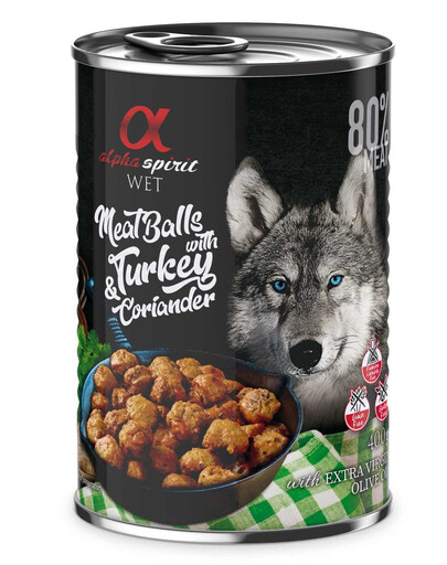 Zloženie: Mäso 80 % (kuracie mäso 70 %, morčacie mäso 10 %), zemiakový škrob, hrachová bielkovina, koriander, minerálne látky, extra panenský olivový olej