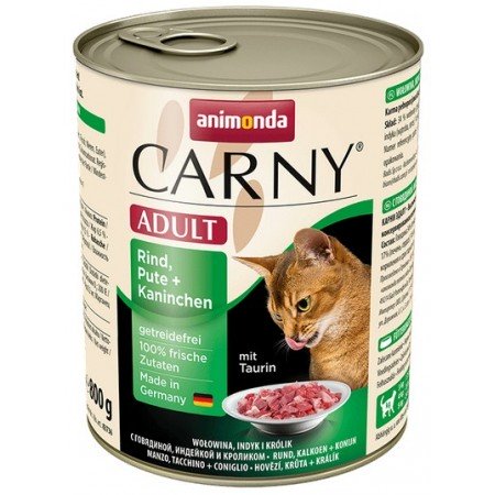 Ako mäsožravce sú mačky prispôsobené na kvalitnú mäsovú potravu. Animonda Canry v podobe čerstvých a šťavnatých kúskov mäsa, jemne upravené, tieto požiadavky spĺňa. Toto krmivo je vyvážené pre fyziologické potreby mačiek, vyznačuje sa optimálnym obsahom bielkovín a tukov a vo výžive mačiek je veľmi dôležité - taurín. Hlavnou zložkou Animonda Carny je čisté mäso (pľúca, srdce, svaly, obličky, srdce) a celé jedlo je doplnené o mikro a makro prvky. Bez sóje, bez farbív, umelých konzervačných látok alebo geneticky modifikovaných prísad, toto krmivo má prirodzenú mäsovú príchuť, ktorú mačky milujú.
