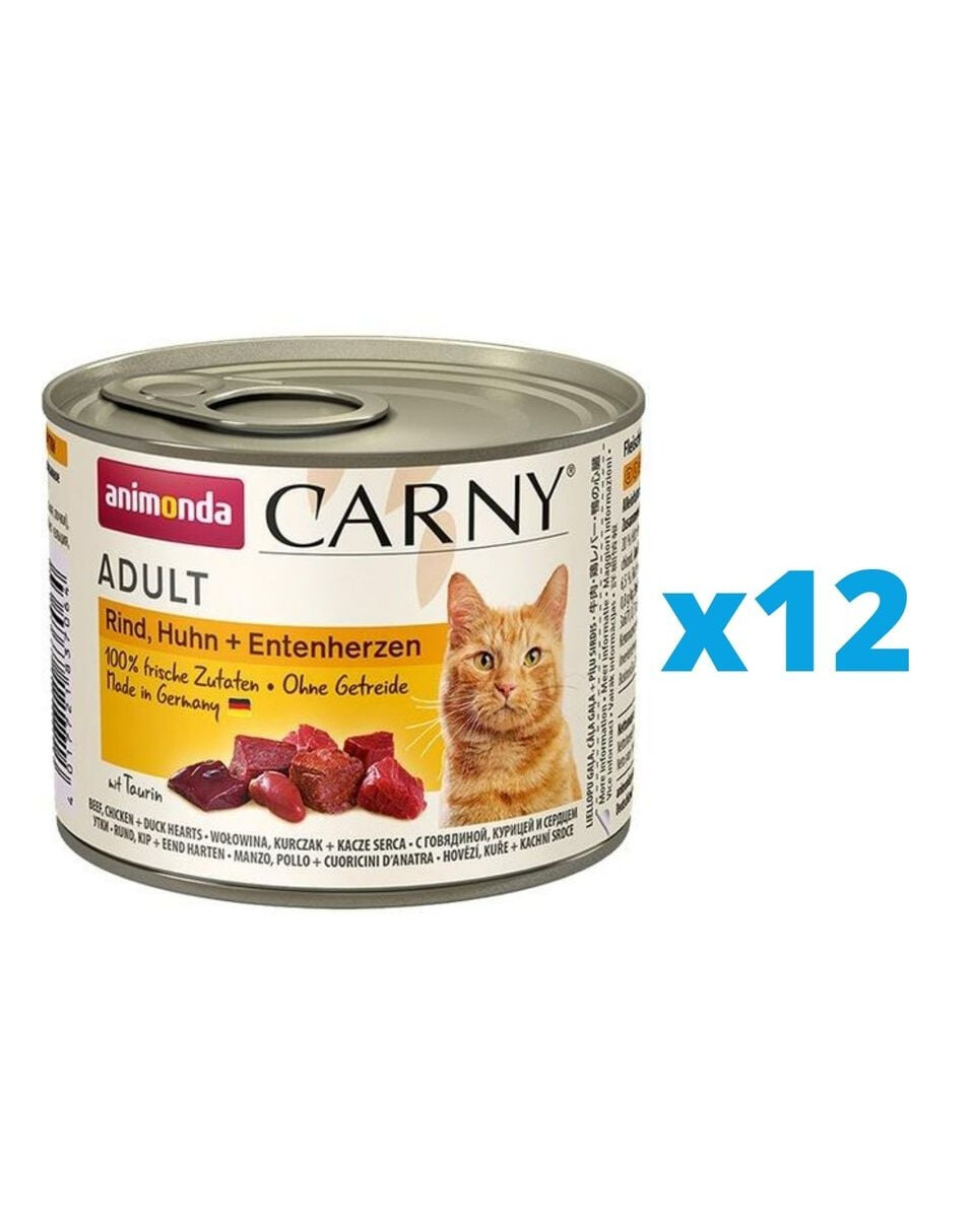Zloženie: 50 % hovädzie mäso (srdce, mäso, pľúca, obličky vemeno), 31 % vývar, 12 % kuracie mäso (pečeň), 6 % kačacie mäso (srdce), uhličitan vápenatý