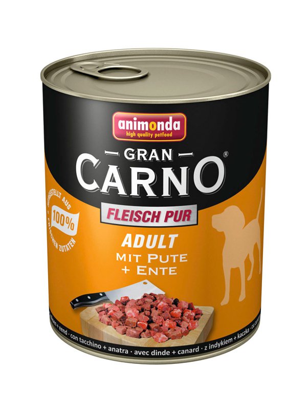 Konzerva Animonda Adult GranCarno morka + kačica 400g. Konzervy Animonda Gran Carno sú vyrábané z čerstvého mäsa a sú doplnené o dôležité vitamíny a prírodné antioxidanty, ktoré chránia imunitný systém a podporujú odolnosť. V krmive sú spracované len vybrané časti čerstvého mäsa, ktoré tiež veľmi dobre chutia. Mäso je vo forme malých kúskov a je zachovaná prirodzená štruktúra mäsa.