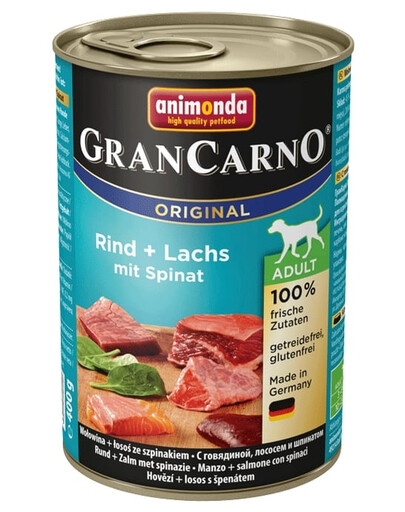 (81% hovädzie mäso), ryby a výrobky z rýb (15%), zelenina (2% špenát),