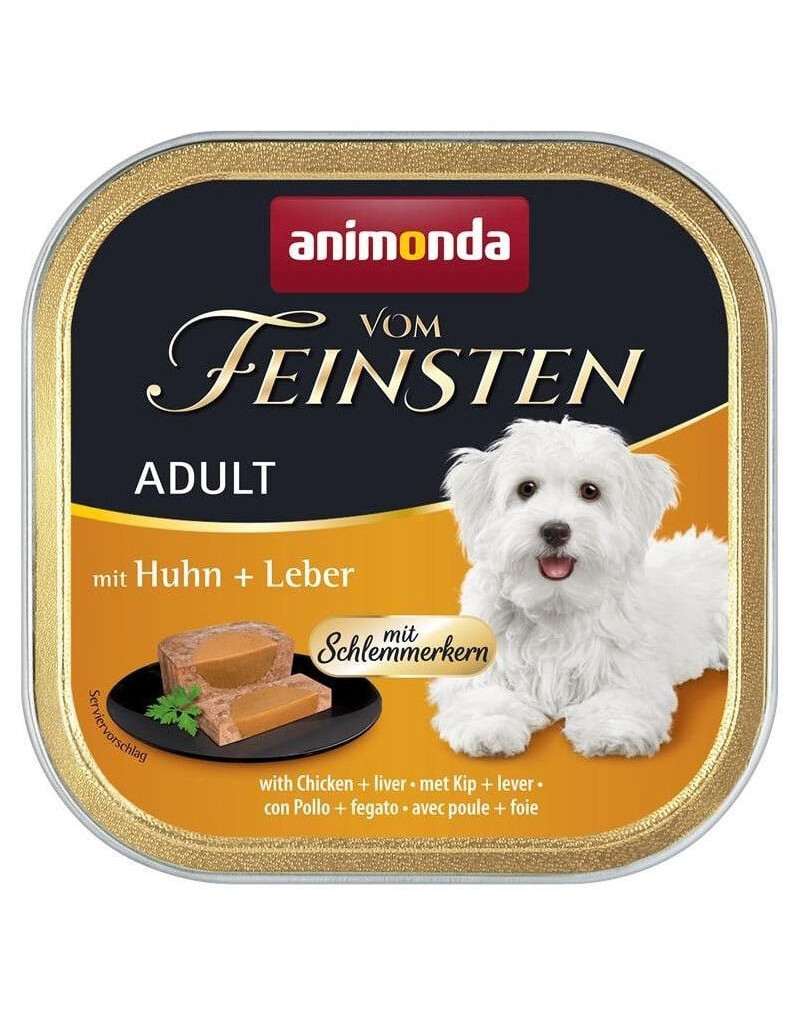 Vom Feinsten Gourmet Centre s kuracím mäsom a pečeňou je kompletné krmivo pre dospelých psov vo veku od 1 do 6 rokov vo forme jemnej paštéty s chutným, krémovým stredom. Kombinácia vybraných mäsových zložiek zabezpečuje výnimočnú chuť a skutočné kulinárske potešenie.