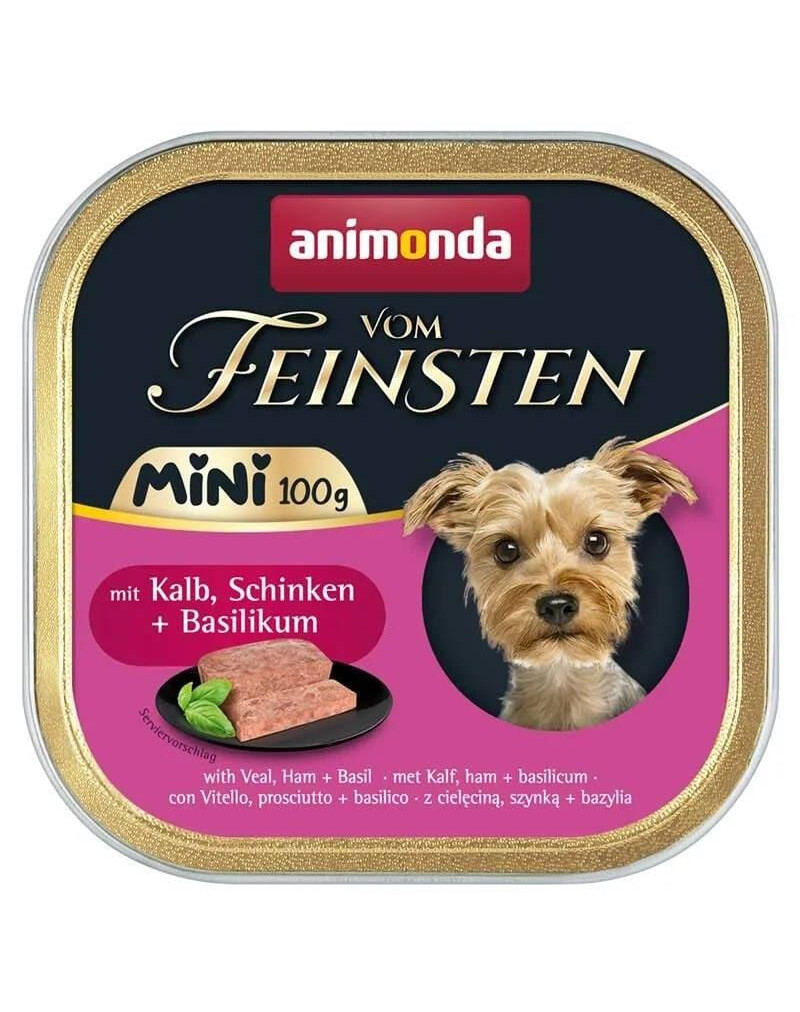 Vom Feinsten Mini s teľacím mäsom, šunkou a bazalkou je kompletné krmivo v praktickej jednej porcii, špeciálne vyvinuté pre dospelých psov malých plemien. Starostlivo vybraná receptúra poskytuje vyváženú stravu a jedinečnú chuť, ktorú si váš pes skutočne vychutná.