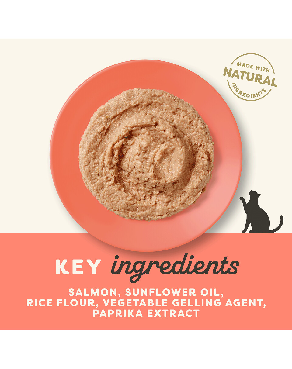 Potraviny pozostávajú iba z prírodných zložiek uvedených v zložení. Neobsahuje ďalšie zbytočné prísady. Losos v potrave poskytuje živočíšnym bielkovinám najlepší a najpriaznivejší aminokyselinový profil pre mačky.