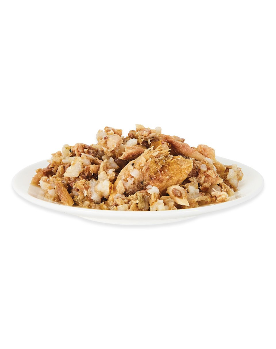 Zloženie: Makrela 50%, sardinka 25%, rybí vývar 21%, ryža 4%