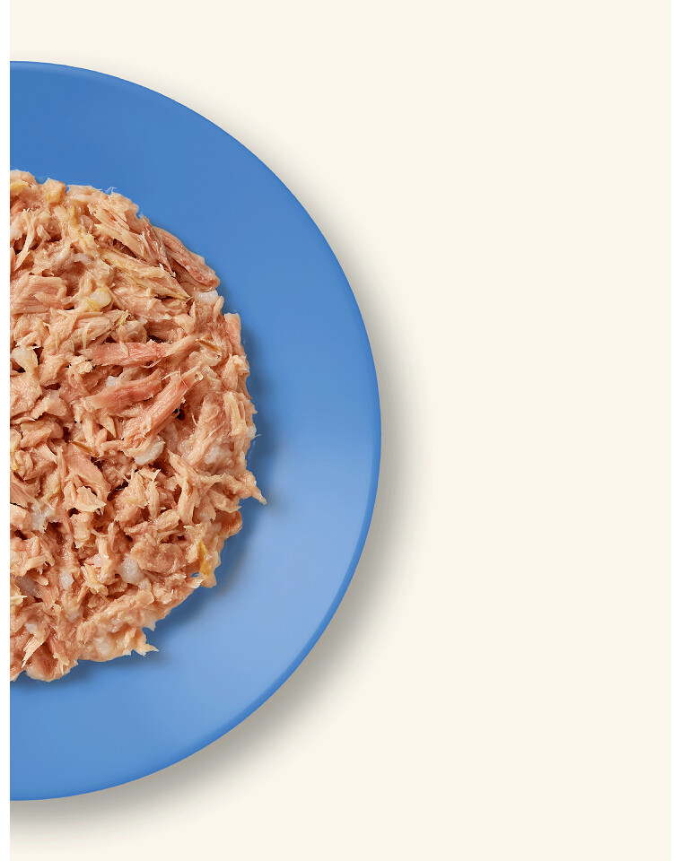 Zloženie: Tuniak 75%, rybí vývar 19%, ryža 6%.