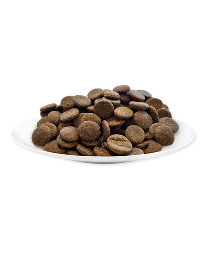 Kuřecí maso 65% (sušené), čerstvé kuřecí maso 9%, hrášek 8%, bramborový škrob 7%, drůbeží olej 1,5% (zdroj Omega 6), řepná dužnina, drůbeží vývar, celá vejce (sušená), rostlinná vláknina, minerální látky, vitamíny, lososový olej (zdroj omega-3, EPA a DHA), kokosový olej (zdroj přírodních MTC´s - zdroj rychlé energie), mrkev, extrakt z čekanky (FOS), vojtěška, mořské řasy / hnědá mořská řasa, glukosamin, methylsulfonylmethan (MSM), chondroitin, mrkev, máta, papriková moučka, kurkuma, tymián extrakt, extrakt z citrusu, taurin 1000 mg/kg, extrakt z juky, brusinky, extrakt z fenyklu, rohovník extrakt, zázvor, šípkový extrakt, extrakt z pampelišky, extrakt z rozmarýnu olej, oregano, probiotika - E1705 Enterococcus faecium cernelle 86 (SF68: NCIMB 10415) 1.000.000 cfu/kg pro tvorbu, obnovu a udržení vyvážené střevní mikroflóry u psů.