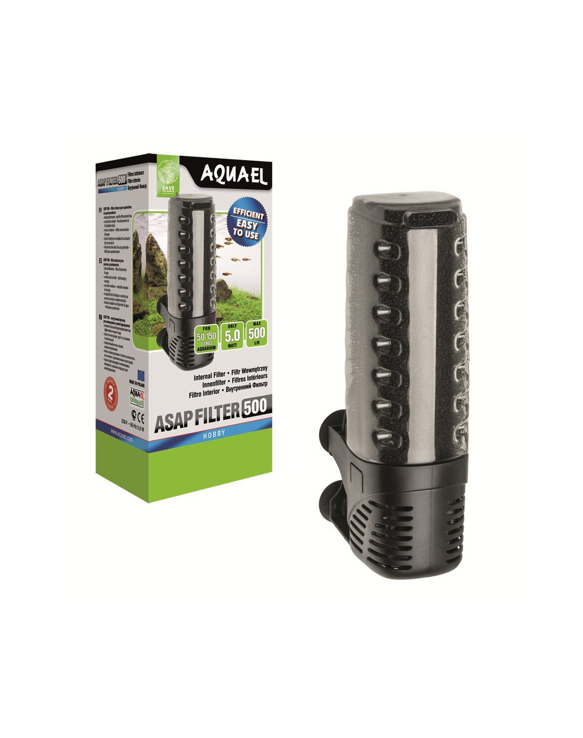 Vnútorný filter pre akváriá ASAP 500 pozostáva z moderného energeticky úsporného motora a veľkej priehľadnej nádoby naplnenej filtračnou špongiou. Voda, ktorá preteká, prechádza účinnou mechanickou filtráciou a - vďaka baktériám, ktoré sa rýchlo usádzajú v hubke - biologickej. Špongia by sa mala pravidelne oplachovať, v prípade opotrebenia by sa mala vymeniť.