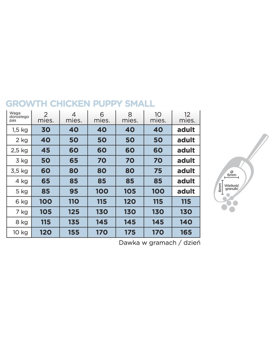 Arion Original Growth Chicken Puppy Small je kompletné krmivo pre šteňatá malých plemien, ktoré obsahuje čerstvé kuracie mäso. Bezlepková receptúra s jedným proteínom obsahuje ľahko stráviteľné kuracie mäso, prebiotiká a probiotiká, ako aj správne množstvo vitamínov a minerálov.