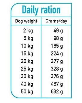 POUŽITIE: Polovlhké krmivo pre psov vhodné pre všetky plemená psov. Tabuľku odporúčaných denných dávok (uvedené množstvá sú približné) nájdete na zadnej strane balenia. Množstvo krmiva sa môže líšiť v závislosti od aktivity, plemena psa a podmienok prostredia. Psy by mali mať vždy k dispozícii čistú a čerstvú vodu. Nádobu skladujte tesne uzavretú, na chladnom, suchom a dobre vetranom mieste, mimo dosahu svetla a slnečného žiarenia.