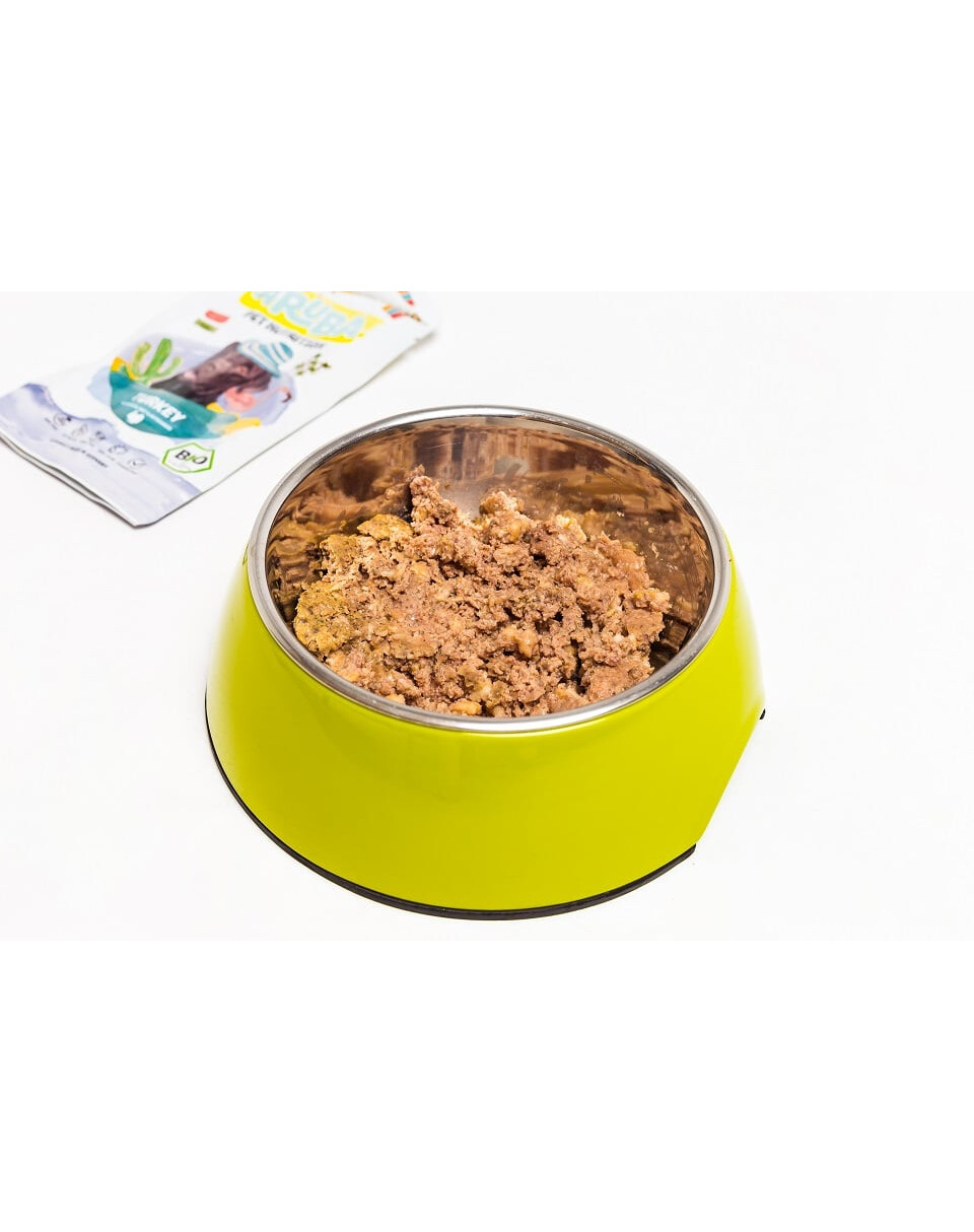 optimálne zdravie. Kompletné krmivo Aruba je plnené vysokokvalitným bio mäsom;