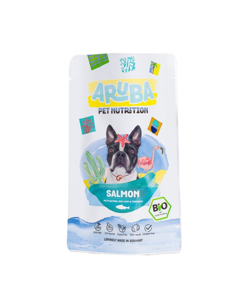 Toto chutné vlhké vrecúško je plné zdravých ingrediencií, aby bol váš pes pripravený na ďalšie dobrodružstvo. Pripravte sa aj na srsť a kožuch lesklejšie ako kedykoľvek predtým vďaka obsahu omega-3 v našom organickom lososovi, spolu so zlepšeným trávením, ktorému napomáha quinoa, a silnejšími kosťami a zubami, ktorým napomáha bok choy.