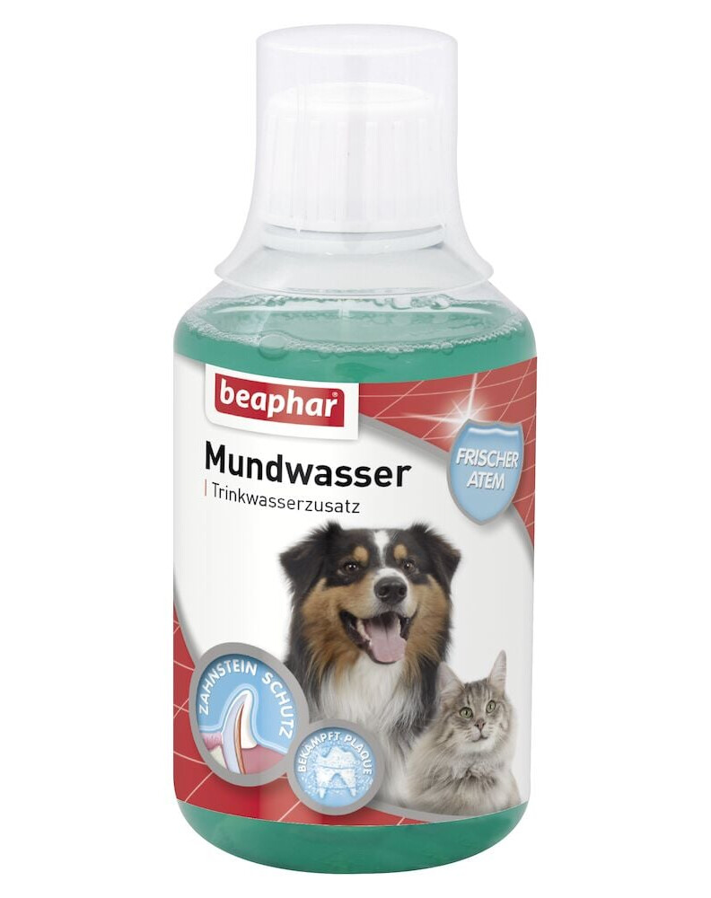 Baktérie a zvyšky potravy sú príčinou vzniku zubného povlaku a zubného kameňa u psov. Výsledkom je poškodenie ďasien a zubov, čo následne vedie k zápachu z úst. Beaphar Oral and Tooth Care Liquid obsahuje špeciálne zložky, ktorým sa darí znižovať tvorbu bakteriálneho povlaku a rast mikroorganizmov, čím zabraňujú tvorbe zubného kameňa, vzniku zubného kazu a paradentózy.