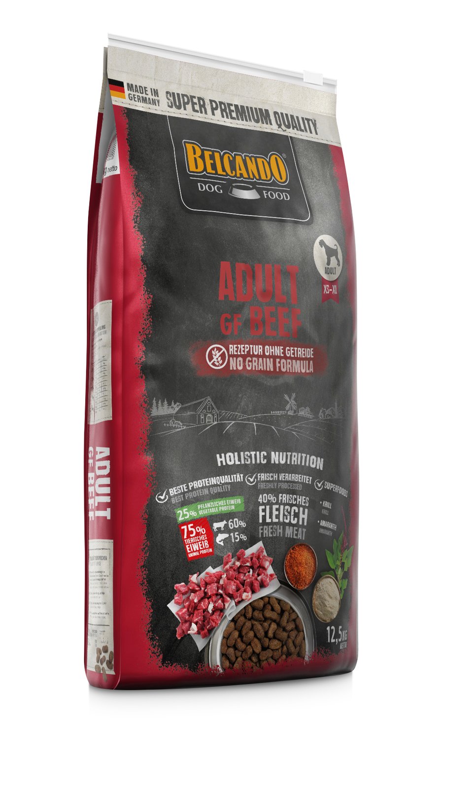 Zloženie: čerstvé hovädzie mäso (40%); amarant (18%); zemiakový škrob; hovädzí proteín, sušený (12,5%); hrachová múka; rybia múčka z morských rýb (2,5%); morský a prízemný zooplanktón (krill, 2,5%); pivovarské kvasnice, sušené; rohovníkové struky, sušené; výlisky z hroznových semien; fosforečnan vápenatý; sušená repná dužina, bez cukru; lososový olej; svetlicový olej; hydrolyzované droždie; Chia semená; chlorid sodný; chlorid draselný; sušené byliny (spolu: 0,2%; listy žihľavy, koreň enciánu, centaury, harmanček, fenikel, kmín, imelo, rebríček, listy ostružiny); Kalifornská juka.