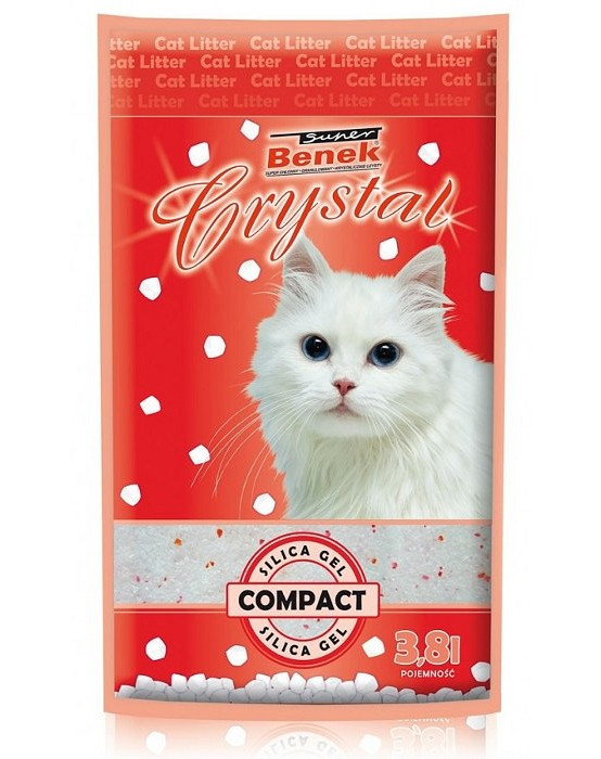 Stelivo pre mačky Super BENEK Crystal sa vyznačuje vysokou čistotou a účinnosťou absorbovania vlhkosti a nepríjemných zápachov. Tieto vlastnosti sú dôsledkom silne vyvinutého vnútorného povrchu štrku a vysokej pórovitosti (viac ako 80%). Proces absorpcie vlhkosti je sprevádzaný zmenou farby štrku. Najskôr sa kryštály stanú matnými a potom žltnú. Vďaka tejto vlastnosti je možné priebežne sledovať spotrebu štrku. Týmto štrkom je syntetický amorfný oxid kremičitý (Si02).