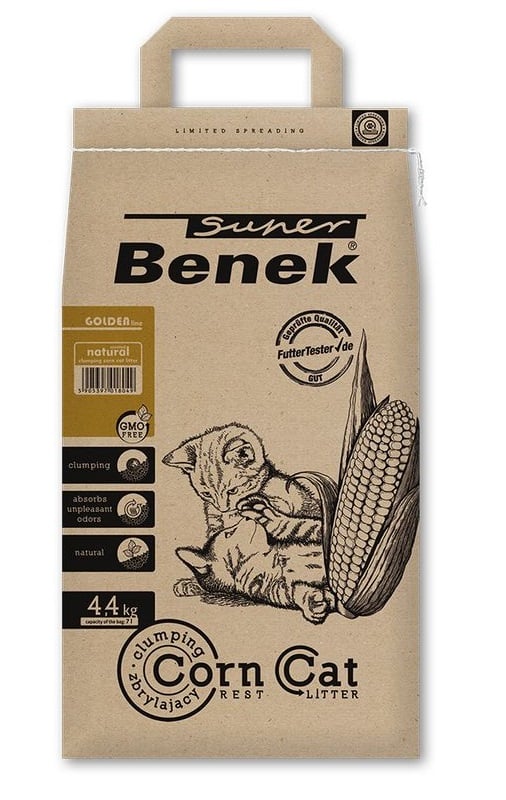 Vyznačuje sa charakteristickým valcovitým vzhľadom, ktorého pravidelný tvar a hladký povrch účinne obmedzujú jej roznášanie mimo podstielky. Granulát si zachováva vlastnosti línie kukuričného zrna, ktorá sa vyznačuje vysokou nasiakavosťou a účinnosťou pri absorpcii nepríjemných pachov. Podstielka vyrobená zo 100% prírodne obnoviteľnej suroviny je biologicky odbúrateľná. Zhromaždené hrudky podstielky sú pevne spojené a nerozpadajú sa, keď ich odstránite špachtľou. Inovatívna technológia zahalenia nepríjemných pachov do hrudky zaručuje sviežosť a účinné ošetrenie charakteristického zápachu mačacieho moču. Štrk Benek Corn je priateľský k vám, vášmu miláčikovi a životnému prostrediu!