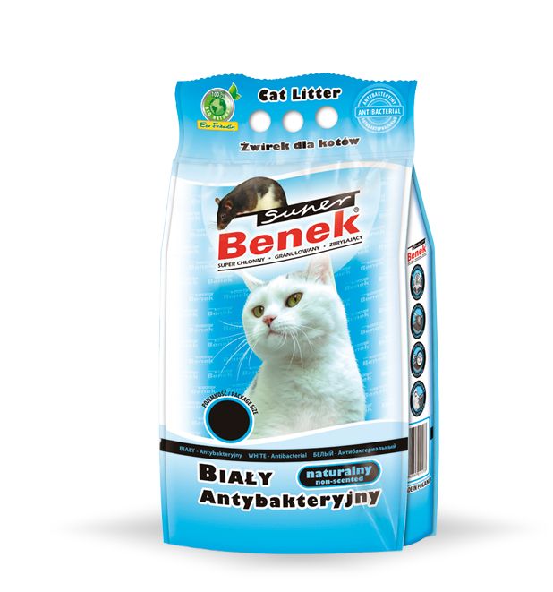 Biele, antibakteriálne stelivo pre mačky s charakteristickou bielou farbou a vysokou nasiakavosťou.