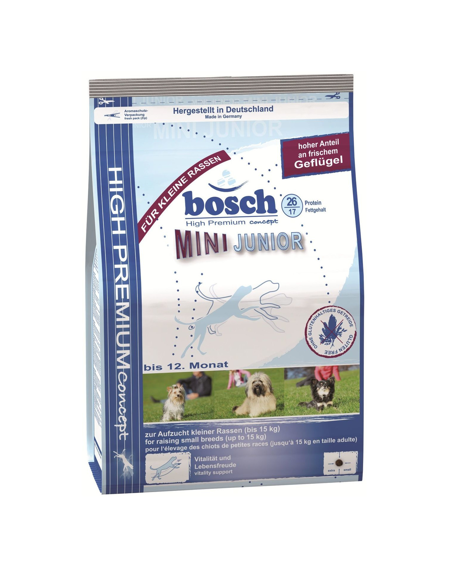 Špeciálne vybraná, v rôznom stupni rozpustná rastlinná vláknina (fruktooligosacharidy) a prímes kvasníc (mannooligosacharidy) udržujú patričnú úroveň bakteriálnej mikroflóry čriev, a tým podporujú trávenie vášho psa.