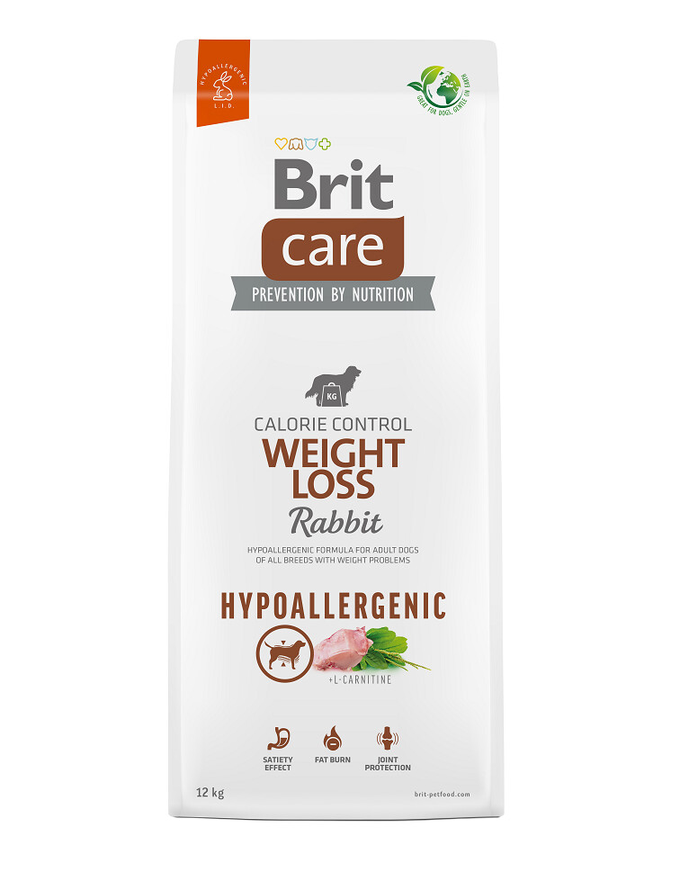 Kompletné krmivo pre psov. Hypoalergénna receptúra Králik a ryža pre dospelé psy všetkých plemien s problémami s nadváhou.
