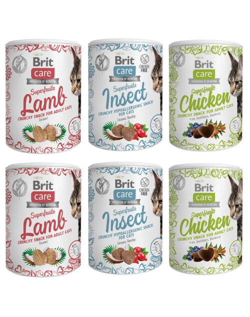 BRIT Care Cat Snack Superfruits Chicken obsahuje okrem iných zložiek kuracie mäso, rakytník a čučoriedky. Pochúťky na báze mäsa bez obsahu obilnín sú vynikajúcim občerstvením pre mačky. Sú ľahko stráviteľné a neobsahujú prídavné látky a farbivá. Sú prospešným krokom na zabezpečenie zdravia a výbornej fyzickej kondície vašej mačky.