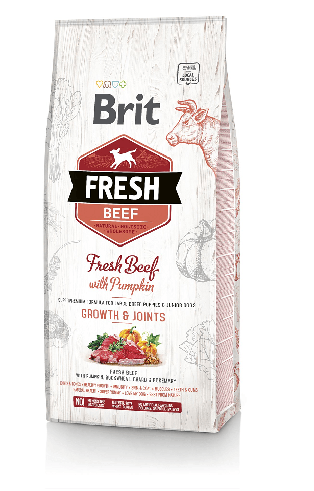 Zloženie: čerstvé hovädzie (40 %), sušené hovädzie (25 %), tekvica (10 %), kurací tuk (konzervovaný zmesou tokoferolov), ovos, pohánka (5 %), jablká, celá cukrová repa, lososový olej, pivovarské kvasnice, ľanové semeno , kuracia pečeň, kolagén, riasy, mangold (0,2 %), petržlen, rozmarín (0,05 %), tymian, nechtík lekársky, púpava, probiotiká (Enterococcus faecium 1x109 CFU), glukosamín 1,700 mg / kg, chondroitín sulfát 1,300 mg / kg, frukto-oligosacharidy 220 mg / kg, β-glukán 200 mg / kg, mannan-oligosacharidy 180 mg / kg, Yucca 150 mg / kg, slávka zelenoústa 100 mg / kg