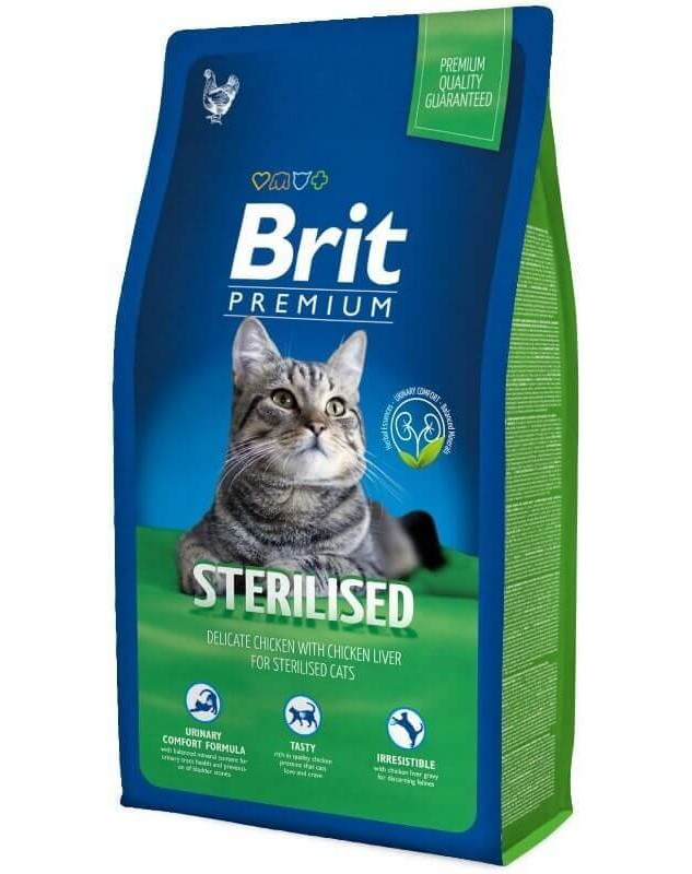 Brit Premium Sterilised jest pełnoporcjową karmą z mięsem drobiowym. Receptura nie zawiera pszenicy. Karma charakteryzuje się wysoką przyswajalnością, wpływa na zdrowy metabolizm organizmu.