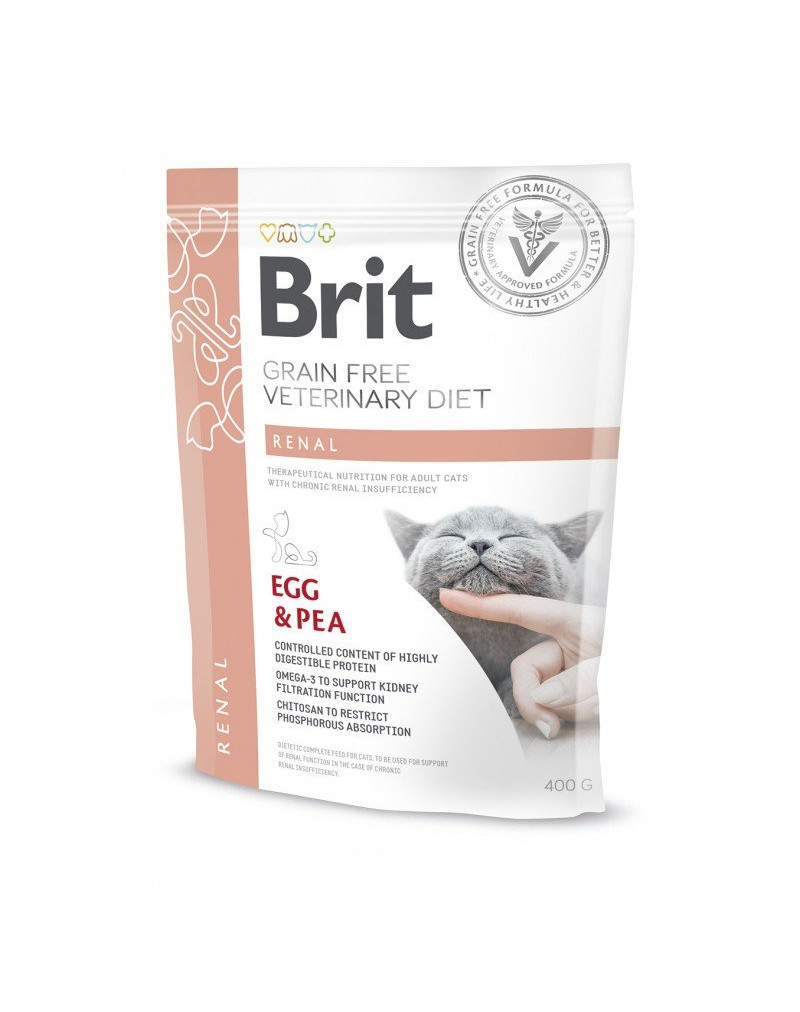 Veterinárne krmivo bez obilnín pre dospelé mačky trpiace zlyhaním obličiek.