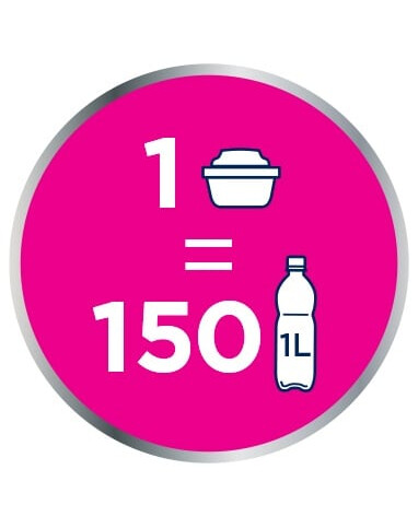 Filtračná kapacita až 150 l. 1 filter MAXTRA PRO nahradí 150 jednorazových plastových fliaš vody (objem 1 l).