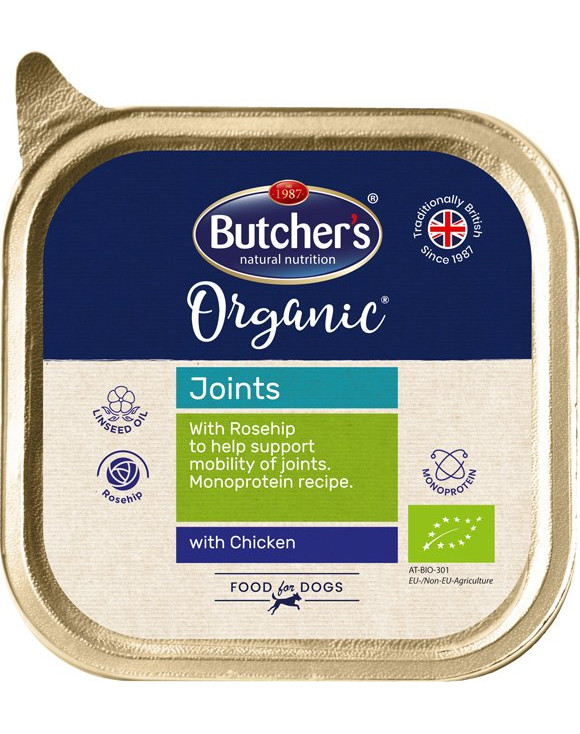 Butcher's Organic je kompletné jedlo pripravené z ekologických surovín, zodpovedne pestované v prírodnom prostredí bez antibiotík a herbicídov, ktoré zaručuje najvyššiu kvalitu. Tento recept dáva vášmu maznáčiku vyváženú a kvalitnú stravu. Okrem toho bola receptúra obohatená o organické funkčné zložky podporujúce špecifické potreby domáceho maznáčika.