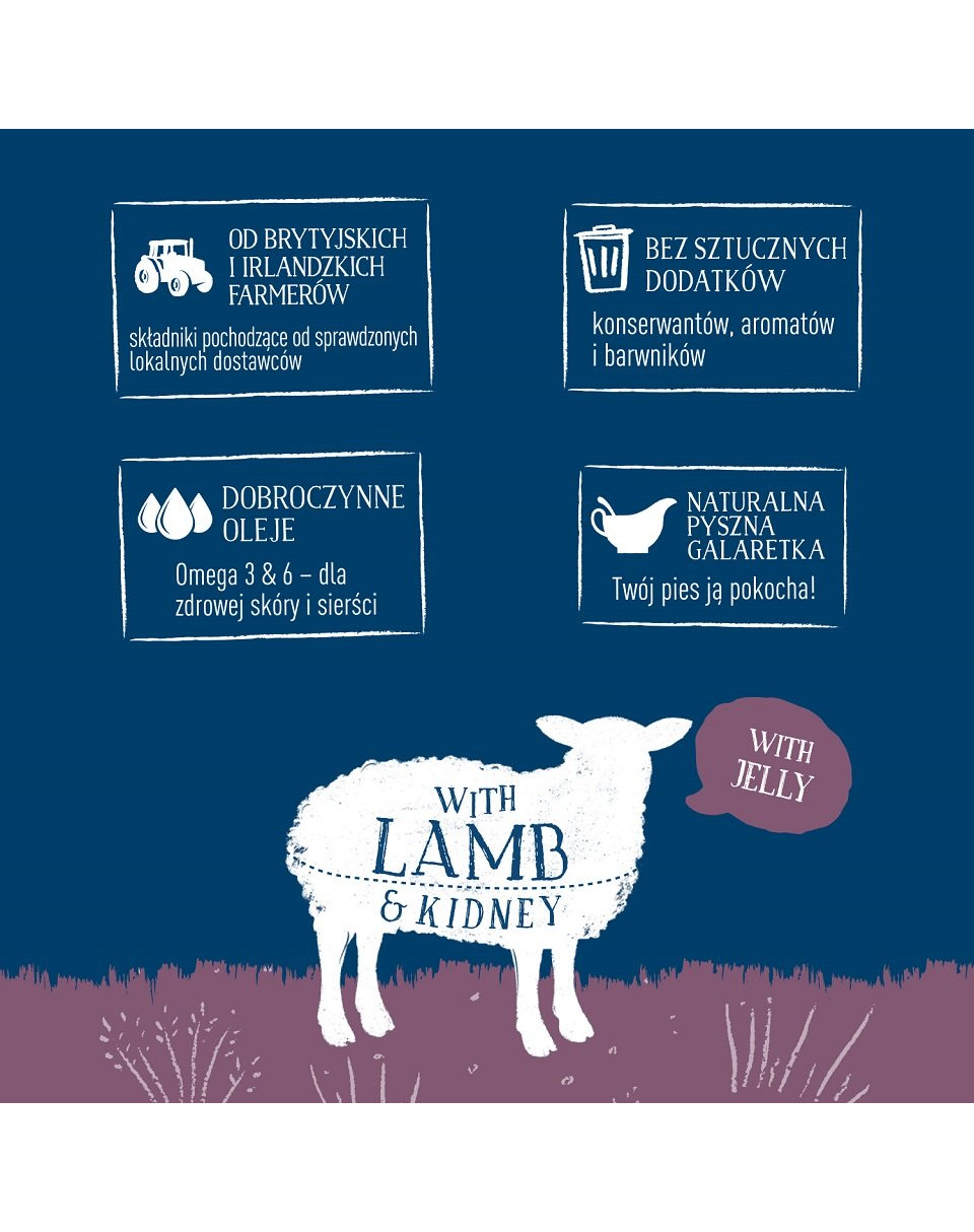ZLOŽENIE: kuracie mäso 42%, jahňacie mäso 4%, obličky