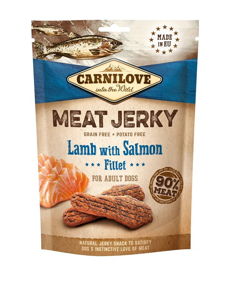 Doplnkové krmivo pre dospelé psy s jahňacím mäsom a filetom z lososa.