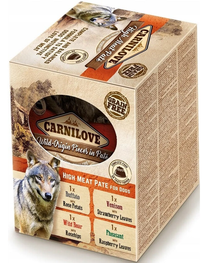 CARNILOVE Meat Pate Multipack Adult je vyvážená a prírodná strava pre dospelých psov všetkých plemien.