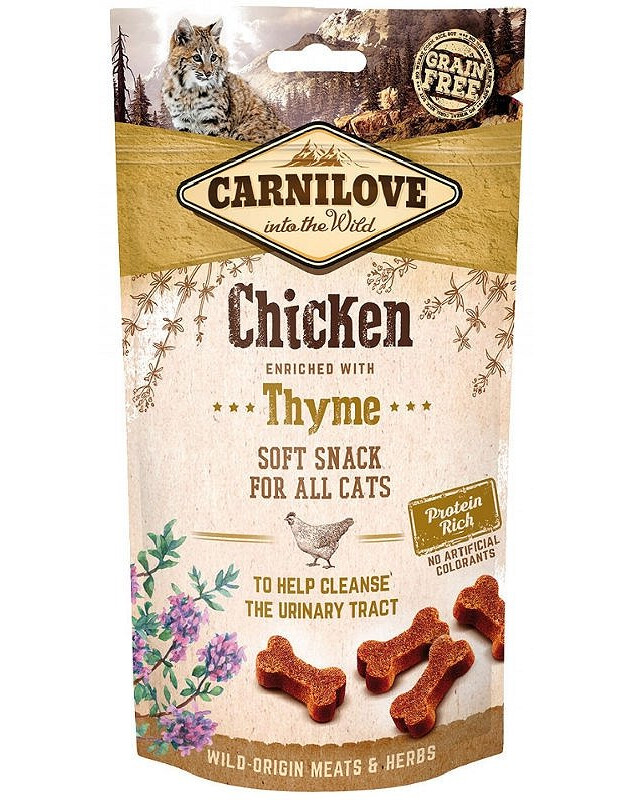 CARNILOVE Semi moist snacks 50g Maškrty s kuracím mäsom a tymianom