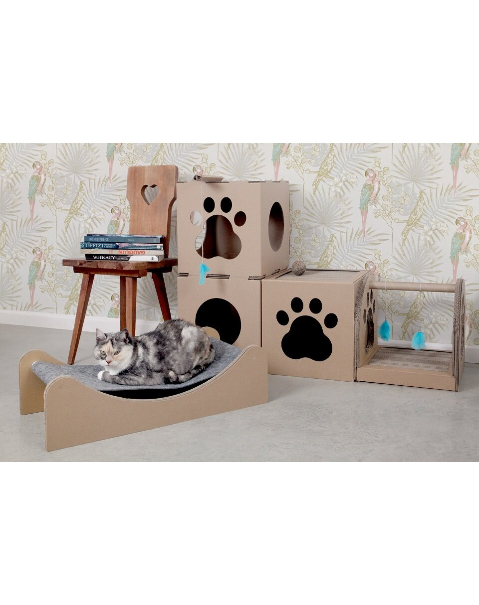 Interaktívna kartónová hračka pre mačky môže byť náhradou za hračku Fun Park Ball. Je tiež modulárny, čo znamená, že si u vás doma ľahko vytvoríte skutočné mačacie ihrisko.
