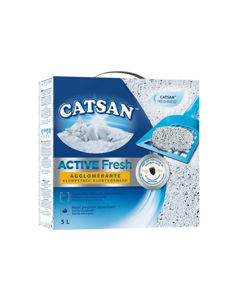 Catsan Active Fresh je vysoko absorpčná, hrudkujúca podstielka pre mačky, ktorá udržuje toaletu vašej mačky sviežu a čistú. Stielka sa skladá z prírodného bieleho ílu vybraného na tento účel, ktorý ovplyvňuje efektívny proces zhlukovania. Aktívne uhlie pohlcuje nepríjemné pachy a po navlhčení poskytuje podstielke jedinečnú sviežu vôňu.