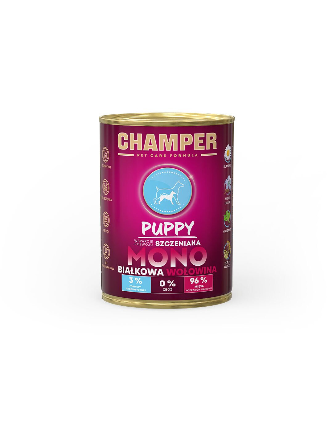 Monobielkovinová receptúra založená na kvalitnom hovädzom mäse – zdroji dobre vstrebateľných bielkovín a železa. Výnimočne chutná a vhodná aj pre psy s potravinovou prehnanosťou. Bez obilnín, sóje, strukovín, GMO a konzervantov – iba čisté, hodnotné zložky podporujúce zdravý vývoj.