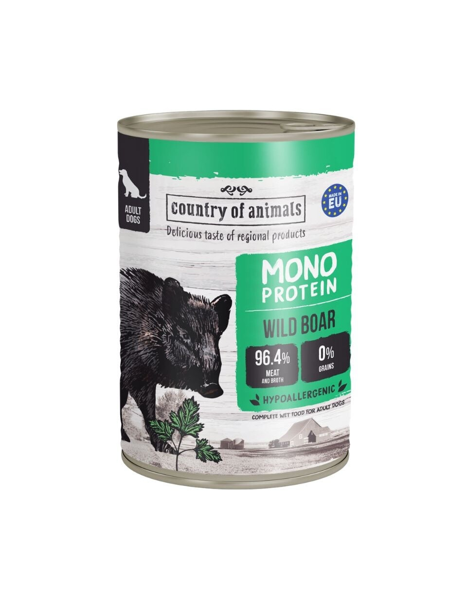 Mokrá monoproteínová strava Country of Animals je niečo viac než obyčajné, každodenné jedlo pre vášho miláčika. Je to skutočný pôžitok, kde výnimočná chuť ide ruka v ruke s unikátnym, zdravým zložením, ktoré sa stará o zdravie a jemný tráviaci systém psa.