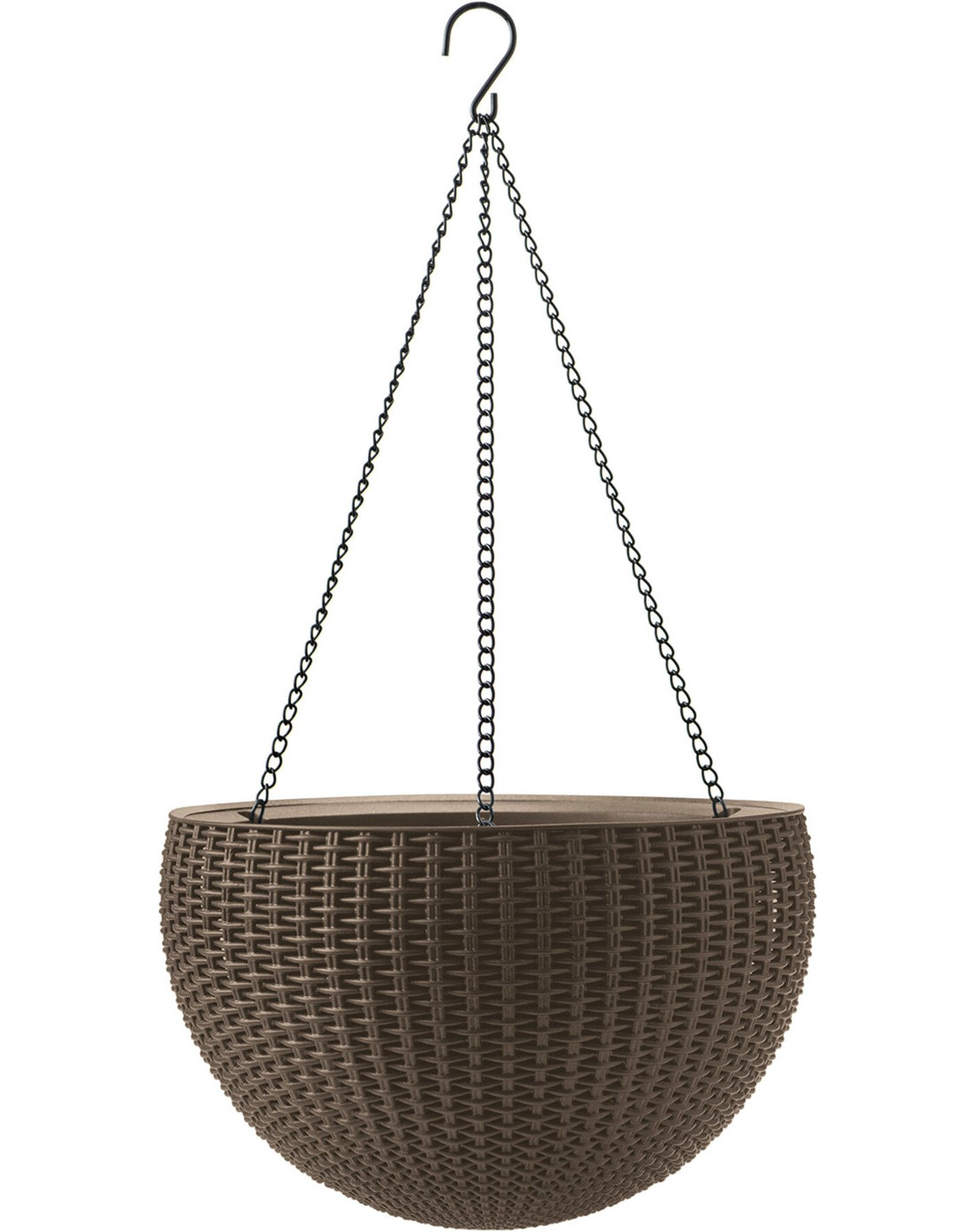 Ku kvetináču je pripevnená silná a pevná rukoväť s tromi retiazkami, ktorá umožňuje bezpečné zavesenie. V spodnej časti kvetináča sa nachádza odtokový otvor.