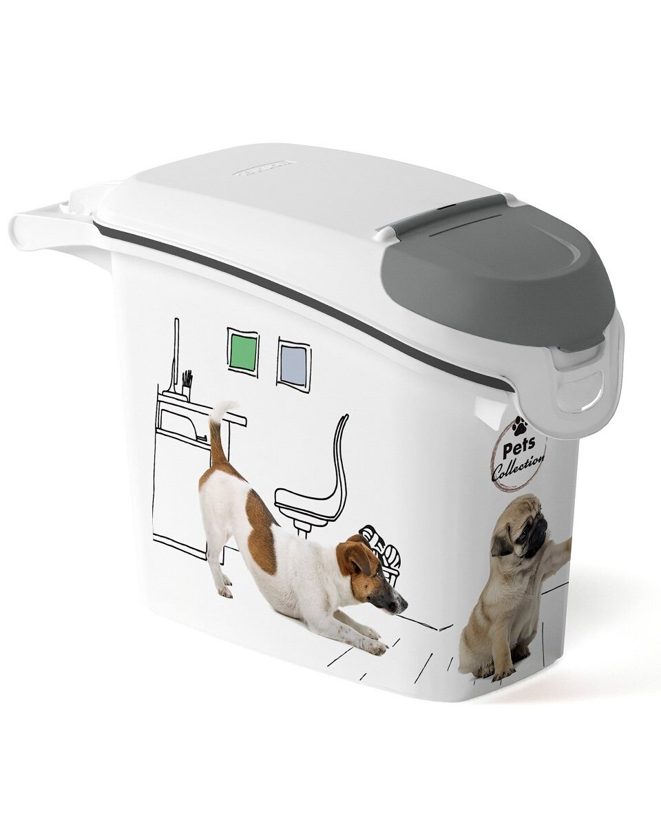 Vďaka špeciálnemu tesneniu na viečku nemôžu uniknúť pachy a krmivo zostane dlhšie čerstvé. Malá klapka na veku umožňuje ľahké dávkovanie krmiva, čo je obzvlášť užitočné pri odmeriavaní správneho počtu domácich zvierat, a vnútorné rozmery ukazujú polovicu a štvrtinu objemu nádoby. Veľký otvor umožňuje ľahké naplnenie nádoby, takže zásoby krmiva môžete doplniť rýchlo a jednoducho. Vďaka pohodlnej rukoväti sa nádoba ľahko prenáša, takže ju môžete ľahko premiestňovať na rôzne miesta v dome.