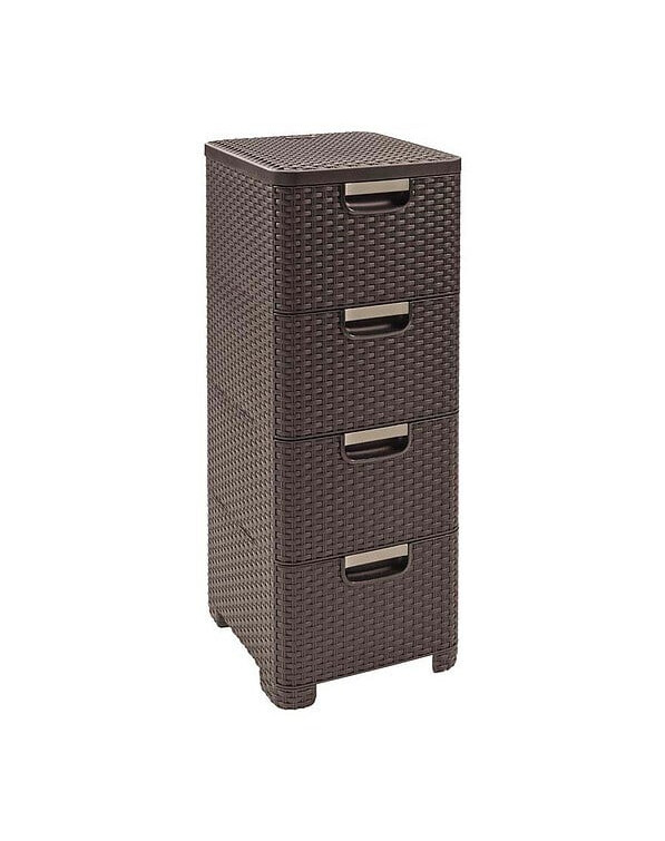 Praktický regál s moderným dizajnom bude užitočná v každej domácnosti. Má štyri priestranné zásuvky s držadlami, ktoré sú odolné a čo je najdôležitejšie, veľmi ľahko sa čistia. Regál je ideálný do kúpeľne, spálne alebo ako kontajner na stole. Vysoko kvalitný materiál, z ktorého je vyrobený, sa vo svojej štruktúre podobá obľúbenému ratanu, ktorý sa perfektne zmestí do každého interiéru.