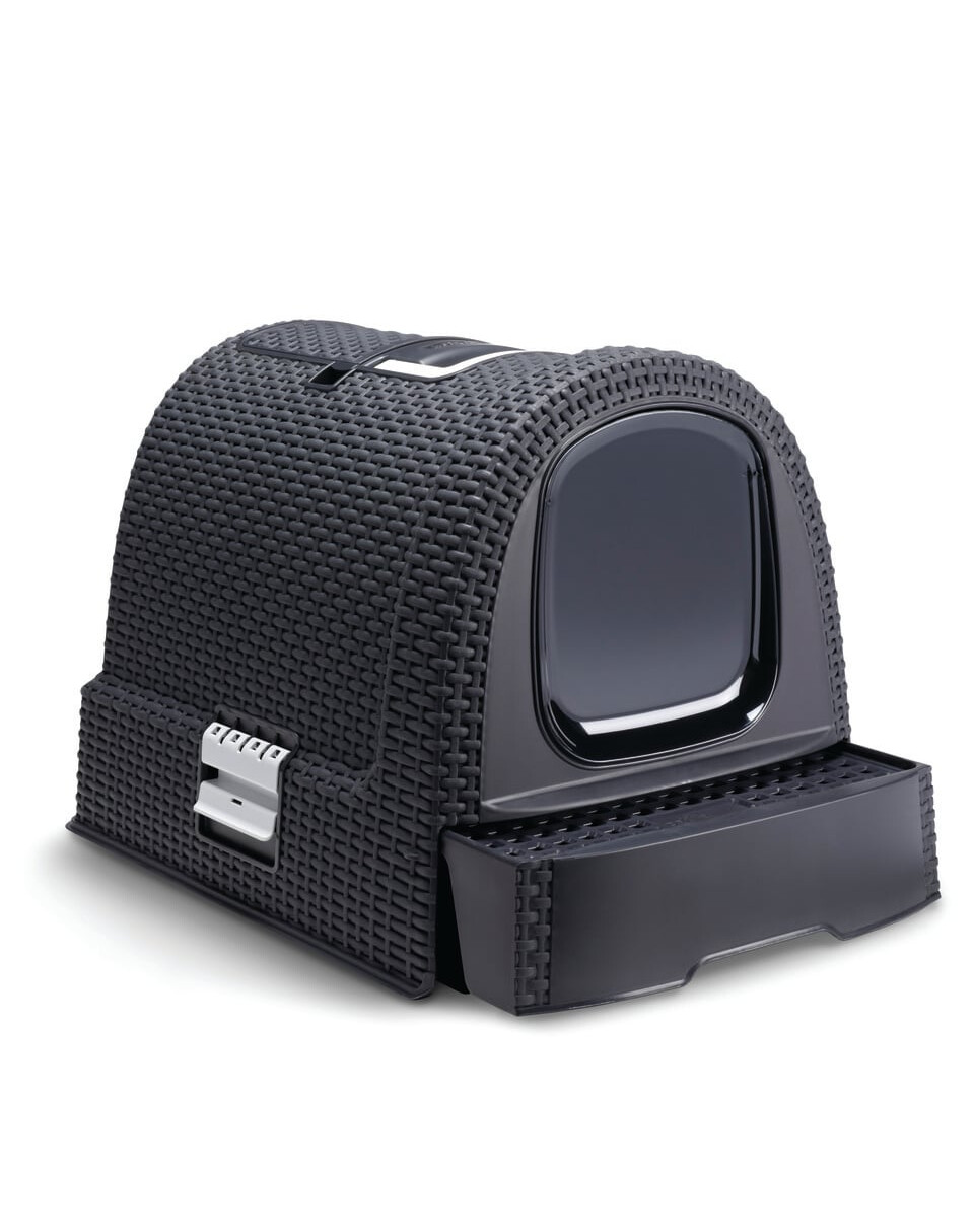 Krytá toaleta pre mačky.