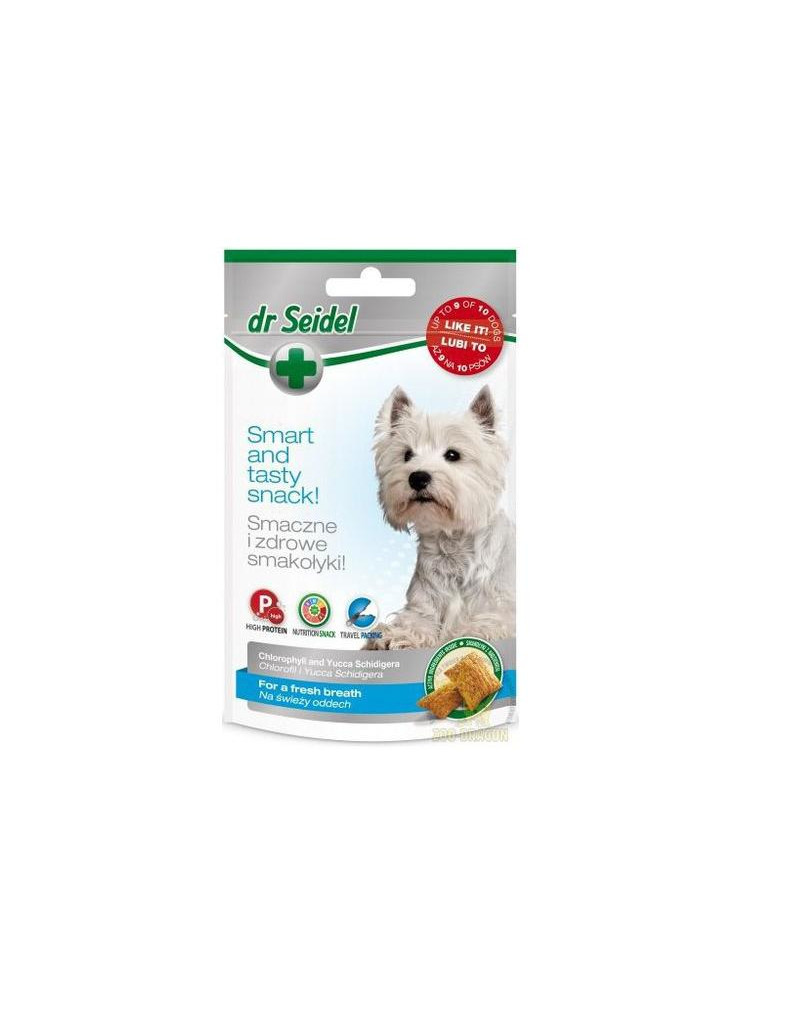 Pełnowartościowy przysmak dla psów wzbogacony o chlorofil i Yuccę Schidigera. Chlorofil ma właściwości dezodorujące, dzięki czemu neutralizuje nieprzyjemny zapach z pyska. Yucca hamuje rozwój bakterii rozkładających mocznik, przez co zmniejsza intensywność zapachu zwierząt i ich odchodów. Zalecenia: Smakołyki neutralizujące nieprzyjemne zapachy. Doskonała przekąska między posiłkami lub nagroda w czasie szkolenia (jako treserki). Składniki aktywne: Ilość w mg/1 smakołyk: chlorofil - 0,5 mg Yucca Schidigera - 18 mg Dawkowanie: małe psy (do 5 kg) 1-2 szt. dziennie średnie psy (do 10 kg) 3-4 szt. dziennie duże psy (powyżej 10 kg) 5-8 szt. dziennie Skład: Mąka kukurydziana, mąka pszenna, drożdże, tłuszcze zwierzęce, otręby słodowe, suszone mięso wołowe, chlorofil (źródło: pietruszka), Yucca Schidigera