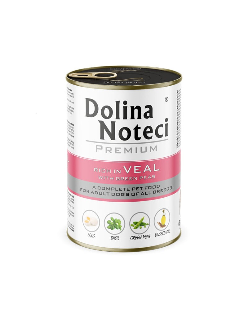Dolina Noteci Premium je ideálne krmivo na každodenné jedlo pre psa. Chudé teľacie mäso, bohaté na bielkoviny a železo, podporuje zdravie a energiu psa. Prídavok vajec zlepšuje chuť a nutričnú hodnotu, a zelený hrášok poskytuje bielkoviny, vitamíny K, C a vlákninu, ktorá zabezpečuje dlhodobý pocit sýtosti. Ľanový olej podporuje kondíciu pokožky a srsti, a psyllium pozitívne ovplyvňuje trávenie.