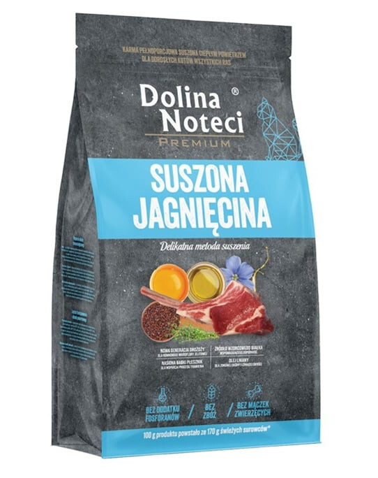 Dolina Noteci Premium Jahňacina je kompletné, suché krmivo vyvinuté pre dospelé mačky všetkých plemien, plne prispôsobené ich prirodzeným výživovým potrebám a mäsožravému charakteru.