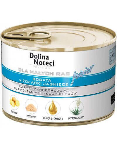 Vlhké krmivo pre šteňatá a mladé psy malých plemien, bohaté na jahňacie žalúdky.