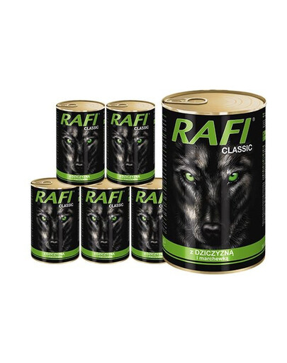 65 % mäsa a živočíšnych produktov v kusoch (z toho 8 % zveriny), obilniny, zelenina (4 % mrkvy), minerálne látky, cukry.